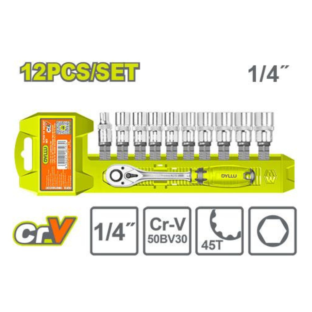 10 Pcs 1/4″ Socket :5-6-7-8-9-10-11-12-13-14mm