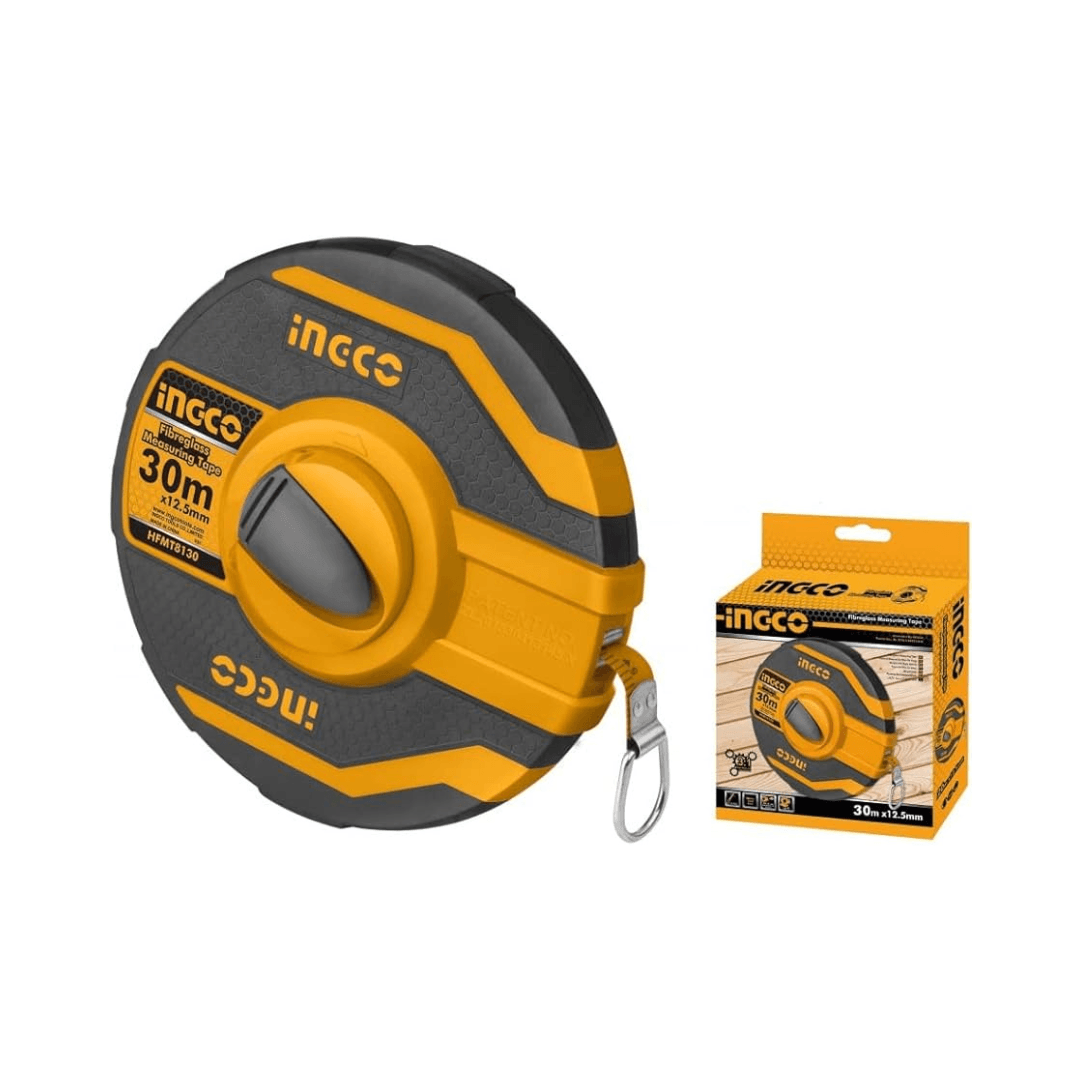 Rapport de vitesse 3:1 pour un rembobinage rapide Longueur et largeur : 30 mx 12,5 mm Avec mesures métriques et pouces Engrenage rétractable en matériau pur Avec revêtement en caoutchouc Poignée intégrée idéale pour une utilisation et un rangement pratique Emballé dans une boîte de couleur